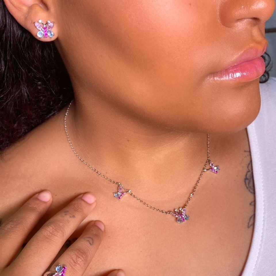 Conjunto em pedraria roxa com 1 anel 1 par...